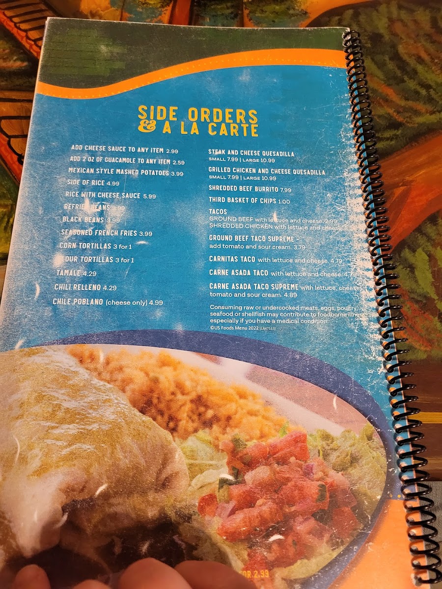 Fried pork with onions, peppers, beans, rice, guacamole, pico de gallo, with your choice of corn or flour tortillas. Includes 1 cheese enchilada